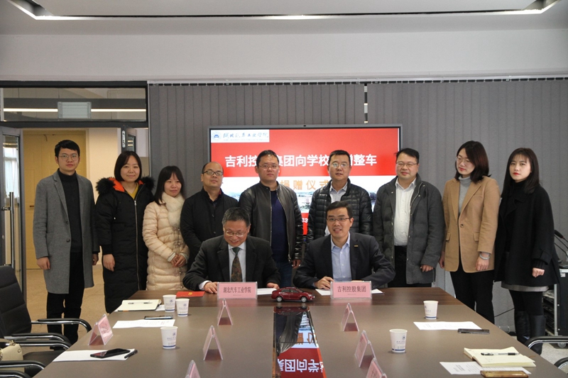 本网讯(文 叶珍/图 杜剑彬)3月9日上午,吉利控股集团向学校捐赠整车签字仪式在汽车工程师学院会议室举行。吉利控股集团浙江汽车工程学院副院长石军平、吉利控股集团浙江汽车工程学院教学办公室主任陈高润、吉利控股集团校园与雇主品牌招聘经理刘嘉琪、吉利控股集团校园与雇主品牌运营经理刘颖;学校合作发展处处长、教育发展基金会秘书长郭都玺、汽车工程师学院直属党支部书记兼副院长杨亚会、招生与就业处处长李新伟、汽车工程师学院副院长曾小岩、招生与就业处副处长曾又、合作发展处办公室主任叶珍、汽车工程师学院毕栋老师参加捐赠仪式。仪式由郭都玺主持。