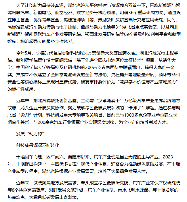 车城崛起的动力源泉——湖北汽院助力十堰打造产业人才高地