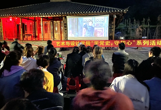 4月6日晚上,师生们还在郧西县观音镇教学实践基地双石沟民俗文化村民俗博物馆前组织观看了红色电影《江城1943》。